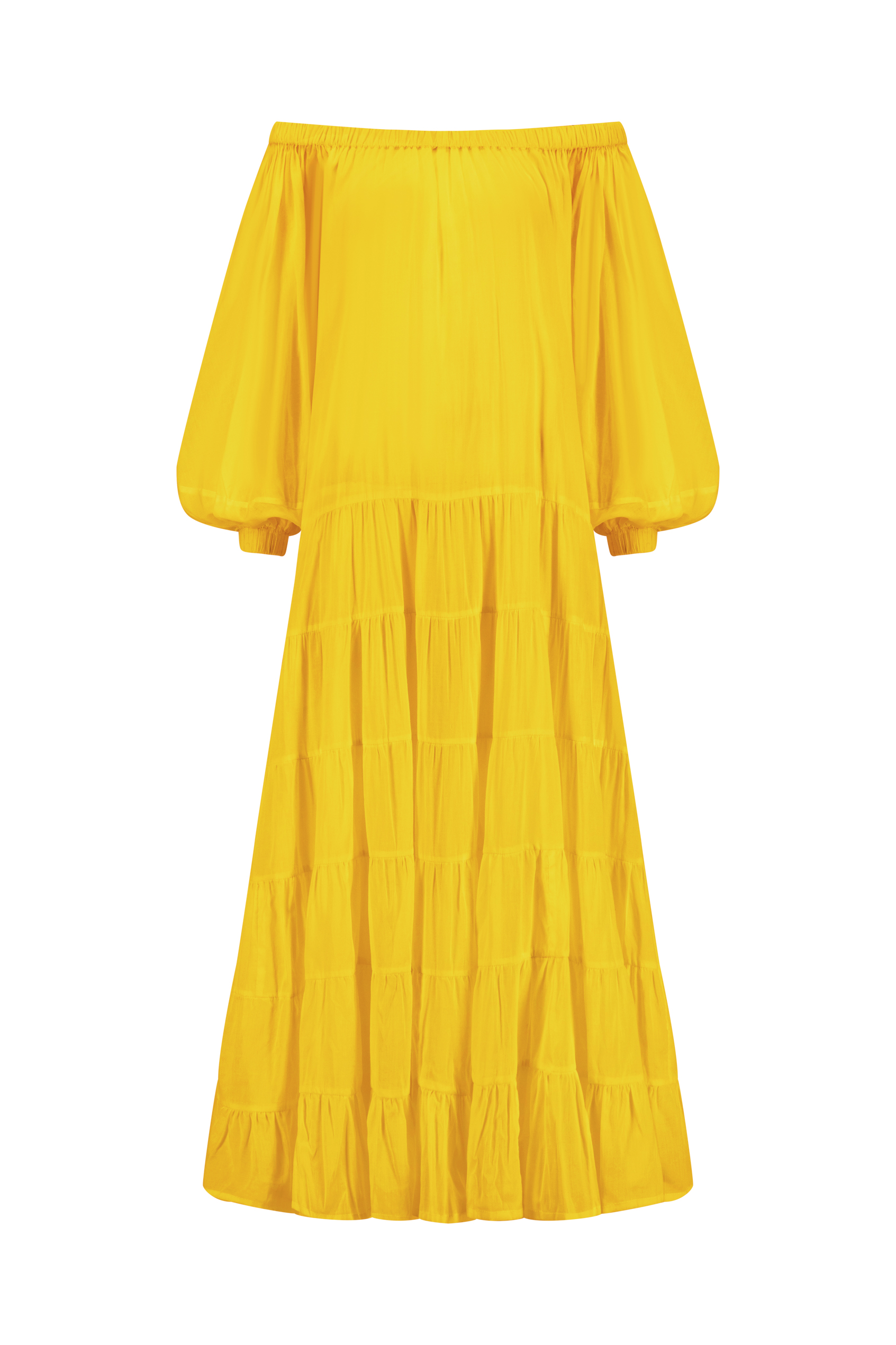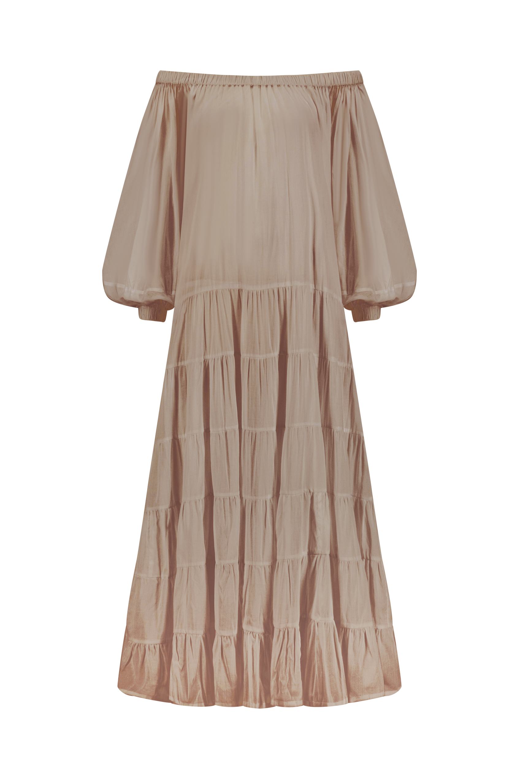our Amaris dresses collection is characterized by a long puffed sleeves that gather at the wrists and a flowing of shoulder. The dresses has a ruffled, tiered skirt that flows to the ground, creating a loose, bohemian or casual style that emphasizes comfort and freedom of movement. The choice of colours and lightweight fabric make them ideal for summer or vacation wear